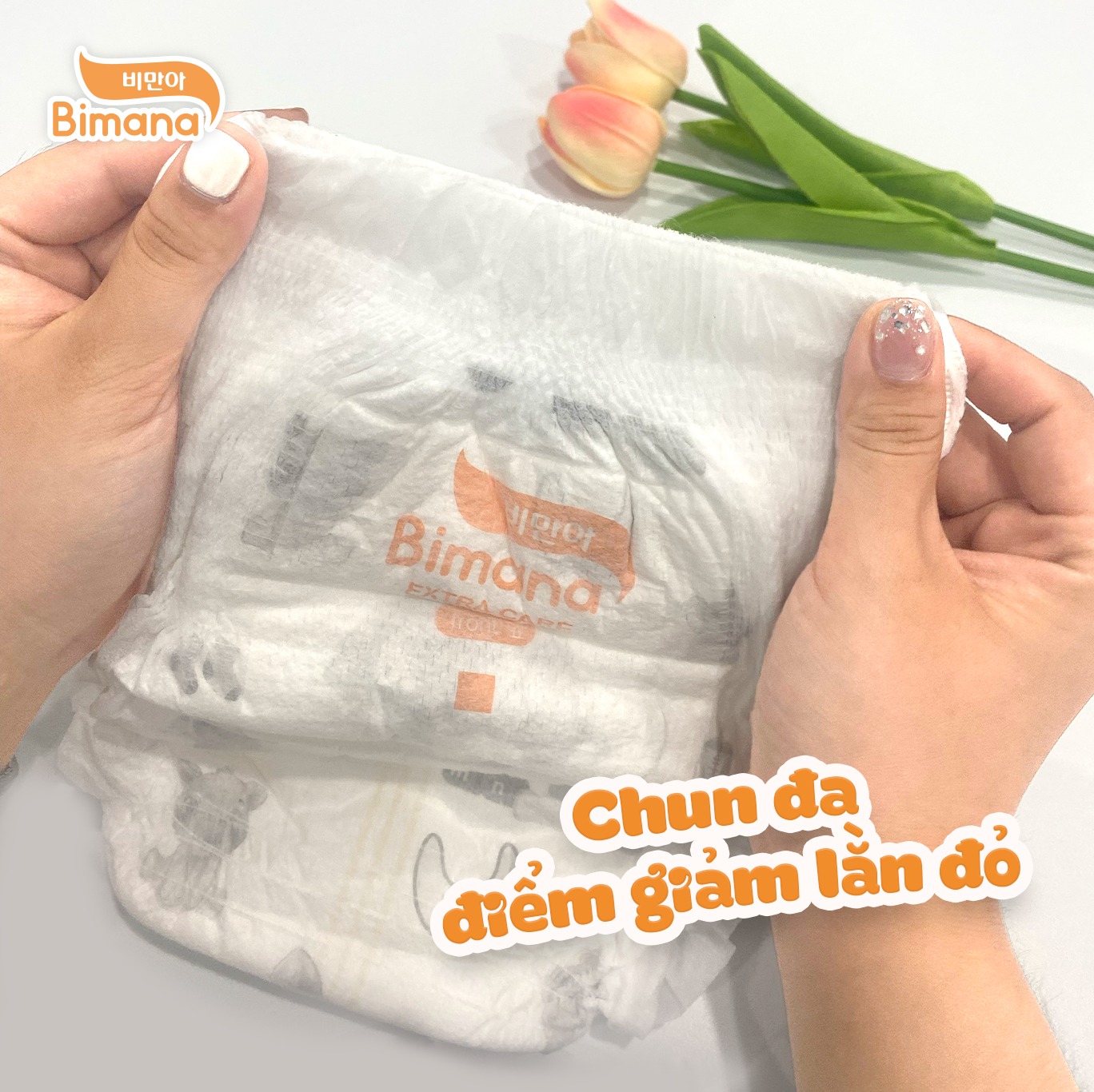 Thấu hiểu những nỗi lo của mẹ khi trời hè nóng nực mà bé yêu vẫn còn mặc bỉm, sẽ dễ gặp phải tình trạng hăm tã, mẩn đỏ, ngứa ngáy khó chịu. Bimana đã phát triển thêm dòng bỉm hè Bimana Extra Care. Bỉm vẫn sở hữu những tính năng vượt trội như: khóa ẩm vượt trội khô thoáng suốt 12h, mặt bông hữu cơ mềm mại, hệ thống vách chống tràn thông min tự do với mọi tư thế vận động. Ngoài ra, với tinh chất mầm gạo non Hàn Quốc bỉm Bimana Extra Care hỗ trợ kháng viêm ngừa hăm hiệu quả cùng đai chun đa điểm co giãn 360 độ giúp bé thoải mái cả ngày dài.